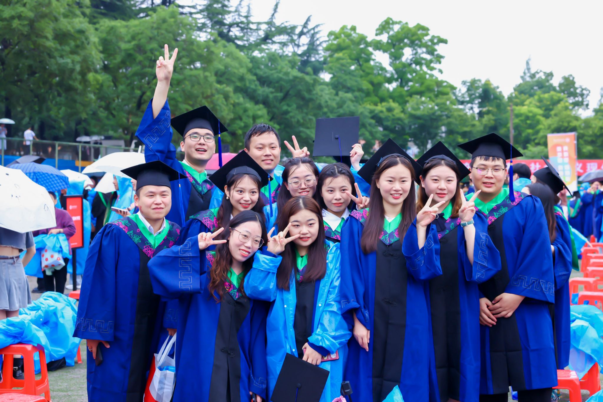 仪式过程中,雨水时断时续,但师生们依然激情满怀,用满满的仪式感给9359名毕业生送行,整场活动充满着温情与祝福。