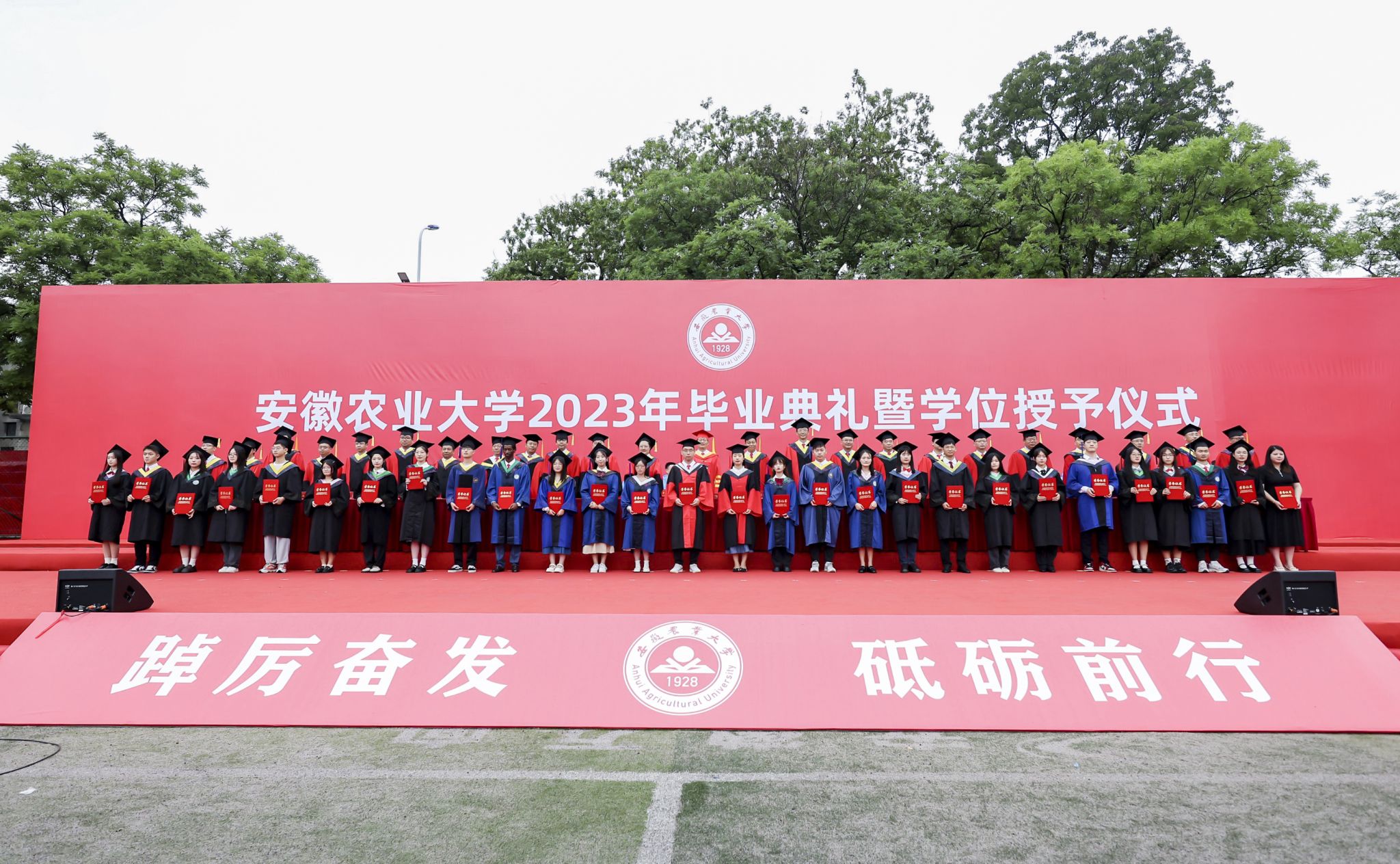 教师代表、茶与食品科技学院教师宁井铭,本科生代表、生命科学学院毕业生刘天润,研究生代表、农学院博士毕业生许辉,高职生代表、外国语学院毕业生高文姐,留学生代表、经济管理学院硕士毕业生马克西姆分别发言,表达了对同学们的深情祝福,对母校的眷恋不舍。