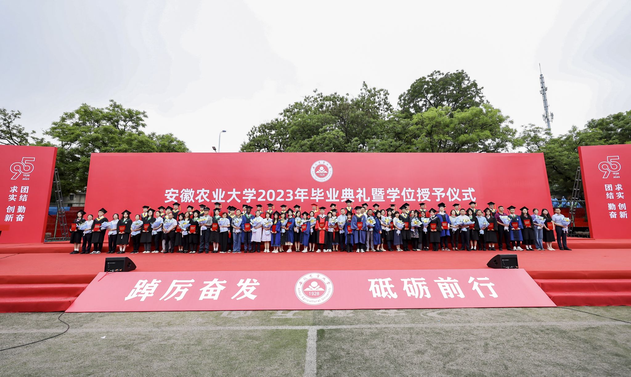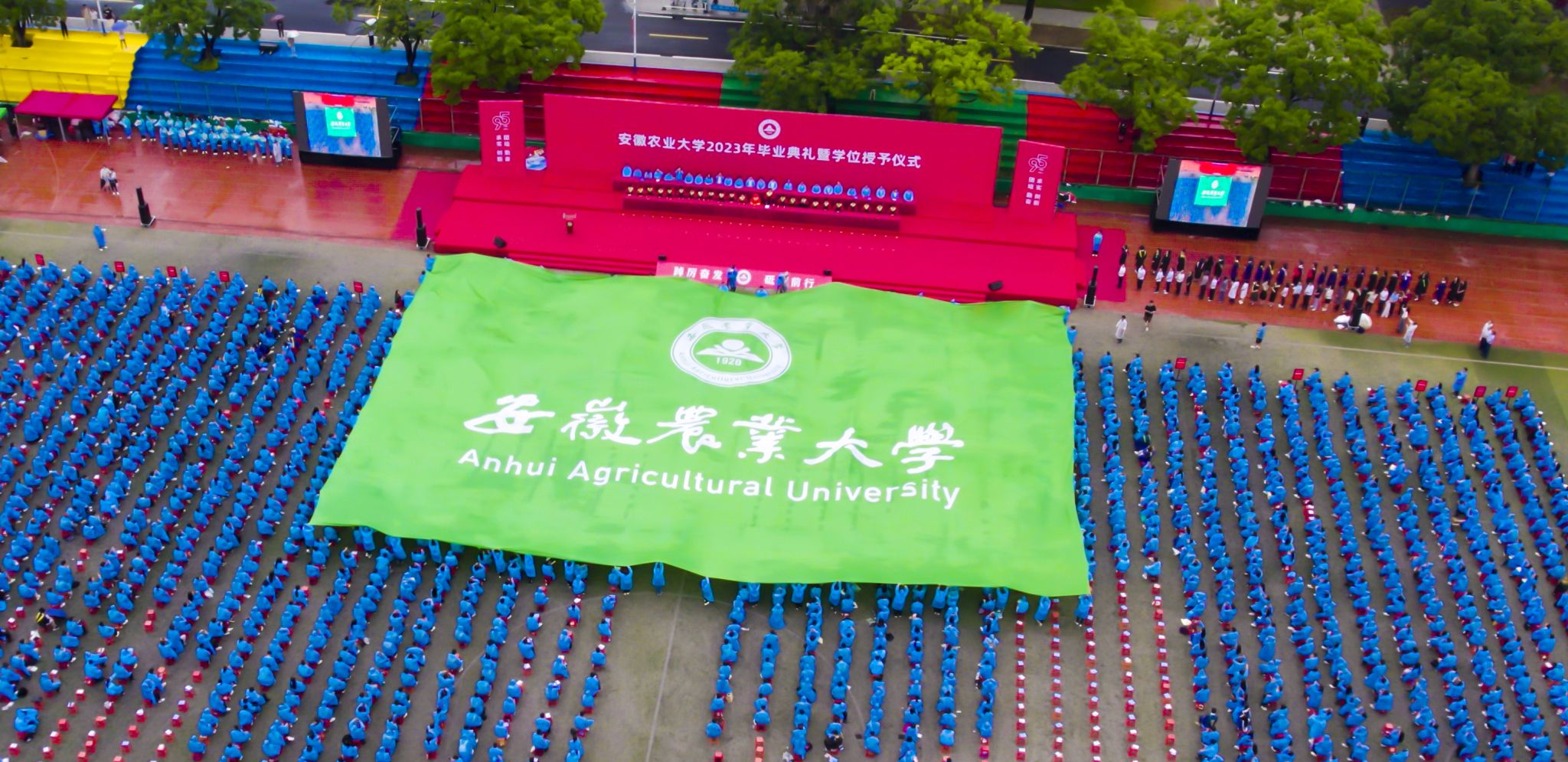 本网讯 “这两天的雨也很应景,渲染了浓郁的毕业氛围,代表母校对你们的依依不舍之情,今天我们一起经受风雨,希望同学们今后既能战风斗雨、风雨无阻,也能够与他人风雨同舟、为别人遮风挡雨。”6月18日上午,天空飘雨,我校2023年毕业典礼暨学位授予仪式如期在田径运动场举行。