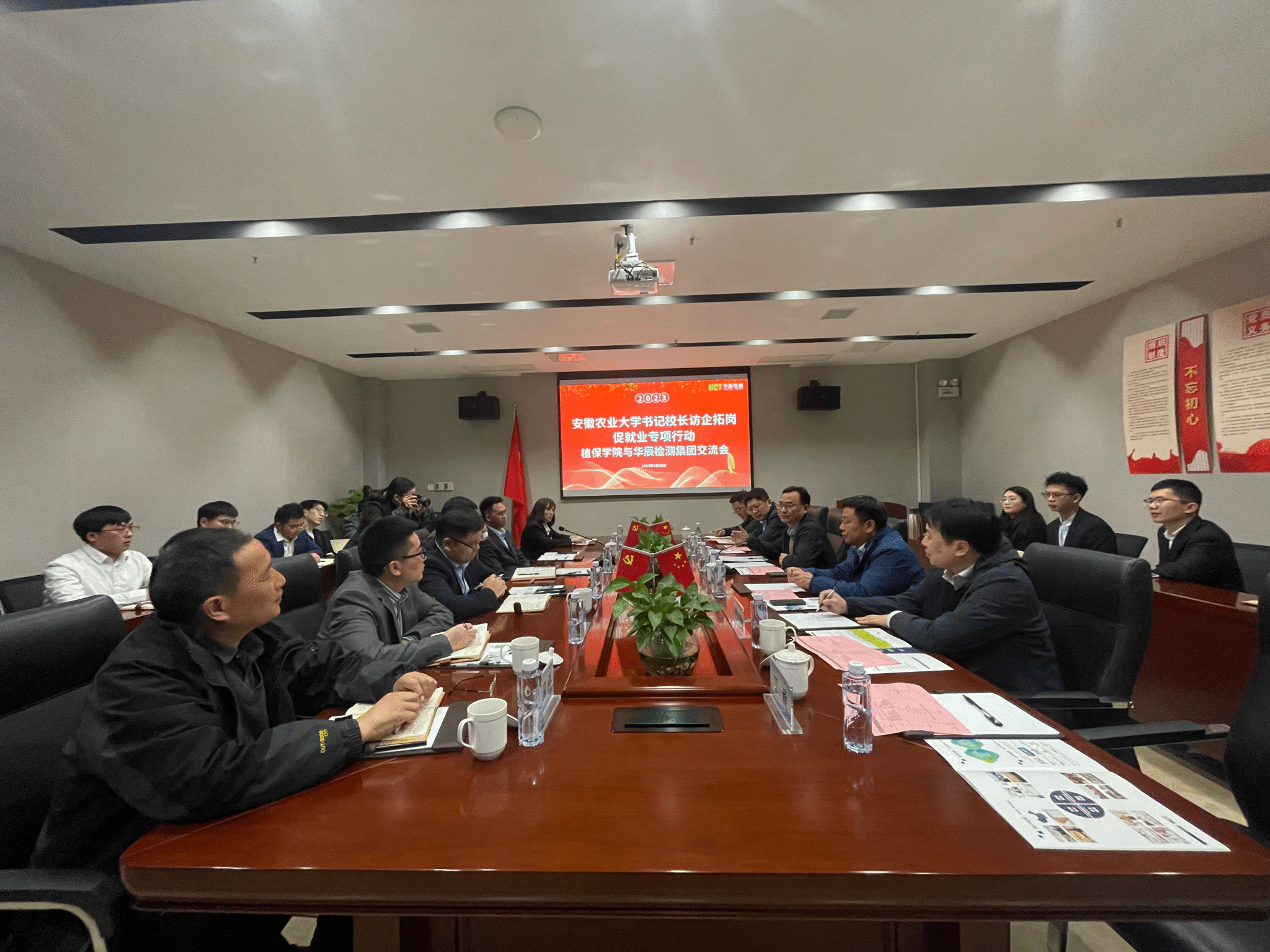本网讯 3月20日,党委常委、副校长操海群带领植物保护学院党政领导班子成员、毕业班辅导员赴安徽华辰检测技术研究院有限公司开展“访企拓岗促就业”专项活动。华辰检测董事长王小明,高级运营副总裁张辉,高级运营副总裁、我校2014届研究生校友乔琳以及14名在司工作的校友等热情接待了学校一行。