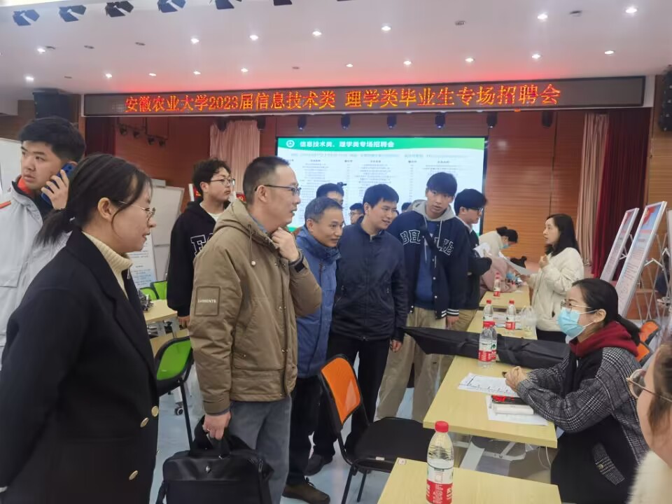 本网讯 3月17日上午,我校在欣苑四楼大学生活动中心举办信息技术类、理学类专场招聘会。招生就业处、信息与计算机学院和理学院党政主要领导到场访企拓岗,与参会企业、毕业生亲切交流。
