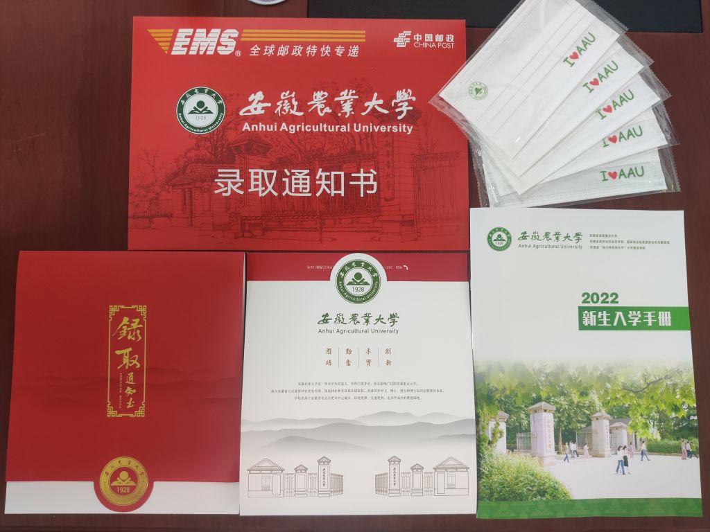 随录取通知书一同邮寄的还包括学校2022新生入学手册以及含学校标识的安农新生专属口罩。新生可通过查询自己的EMS邮件号登录中国邮政官方网站查询投递实况,具体方法如下: