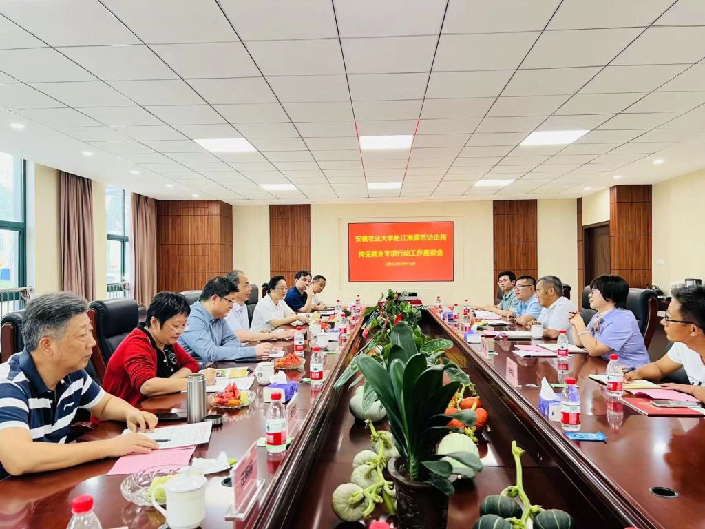 本网讯 6月13日下午,校长夏涛带队走访安徽江淮园艺种业股份有限公司并召开访企拓岗促就业专项行动座谈会,党委常委、副校长李红,1986届蔬菜专业校友、安徽江淮园艺种业股份有限公司总经理戴祖云以及学校党政办、研究生院、科技处、招生就业处、园艺学院等部门负责同志参加了活动。