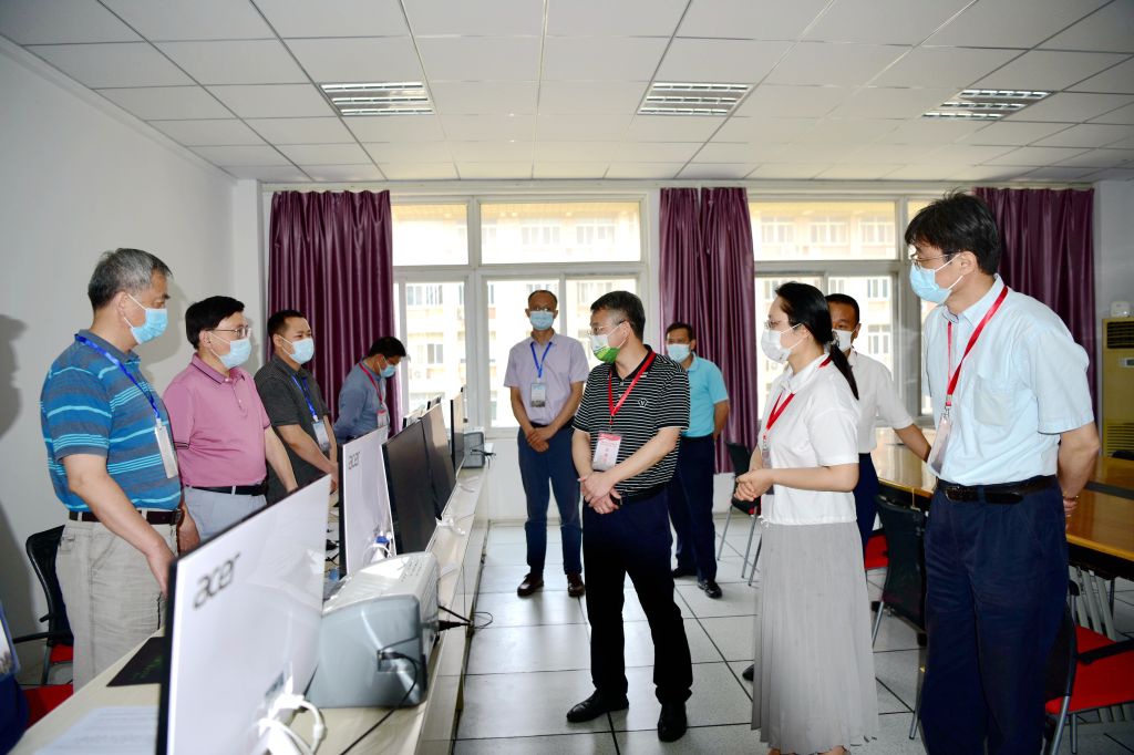 校领导实地察看了质检组、技术组、评卷教室,听取了相关部门负责人就疫情防控、评卷模式,质量监控及阅卷进度等工作情况汇报。