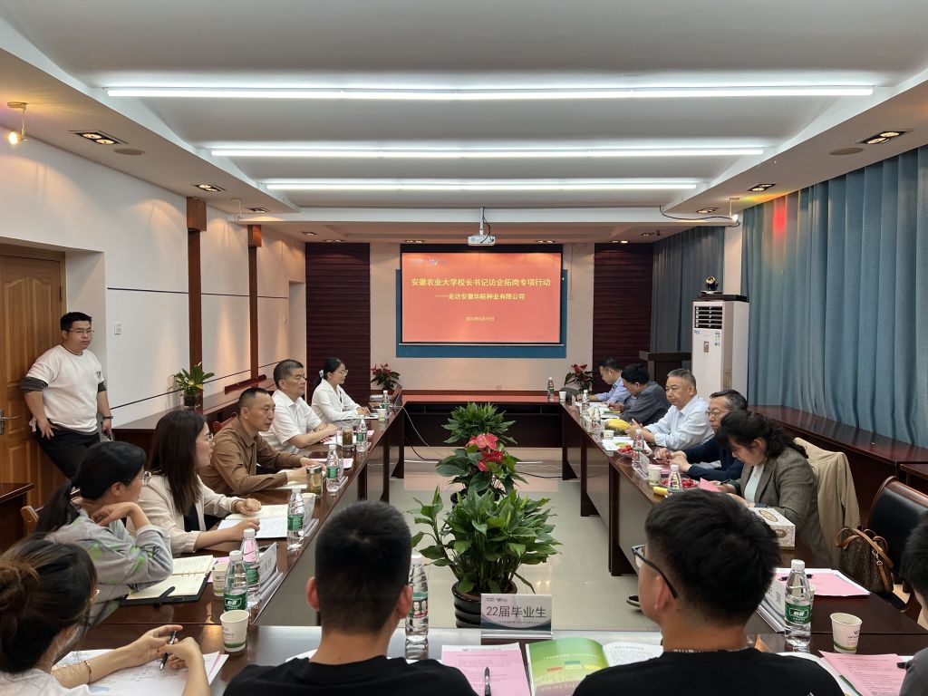 5月17日,裴树东带领学生处、招生就业处、园艺学院负责人一行赴安徽国豪农业科技有限公司开展调研,公司董事长、我校98届校友韩仁长、相关职能部门负责人、校友代表参加座谈交流。