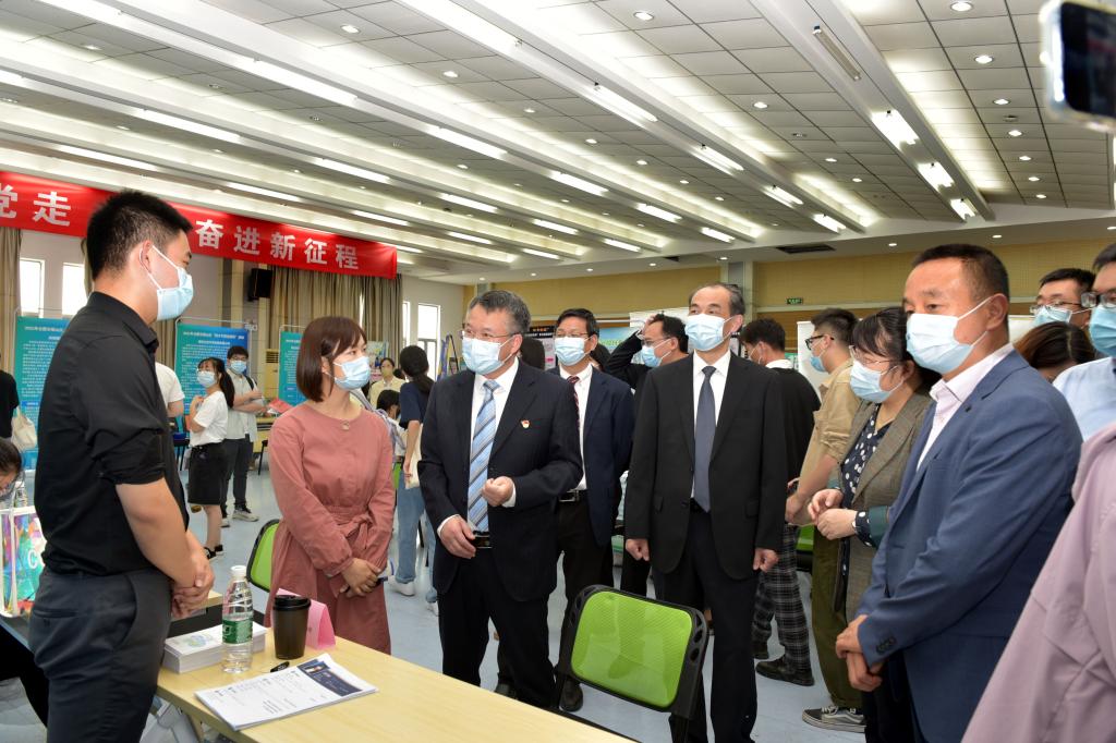 本网讯 为深入贯彻落实党中央、国务院关于高校毕业生就业工作的重要指示精神,积极推进高校书记校长访企拓岗促就业专项行动,5月13日上午,我校在欣苑食堂四楼多功能厅举办合肥市蜀山区、包河区优质企业组团招聘会,校党委书记常业军、校长夏涛、校党委副书记裴树东、校党委常委、副校长操海群,蜀山区人社局党组成员、蜀山区公共就业和人才服务管理中心主任陆丽梅、包河区人社局副局长蒋燕莅临现场,与参会企业、毕业生亲切交流。