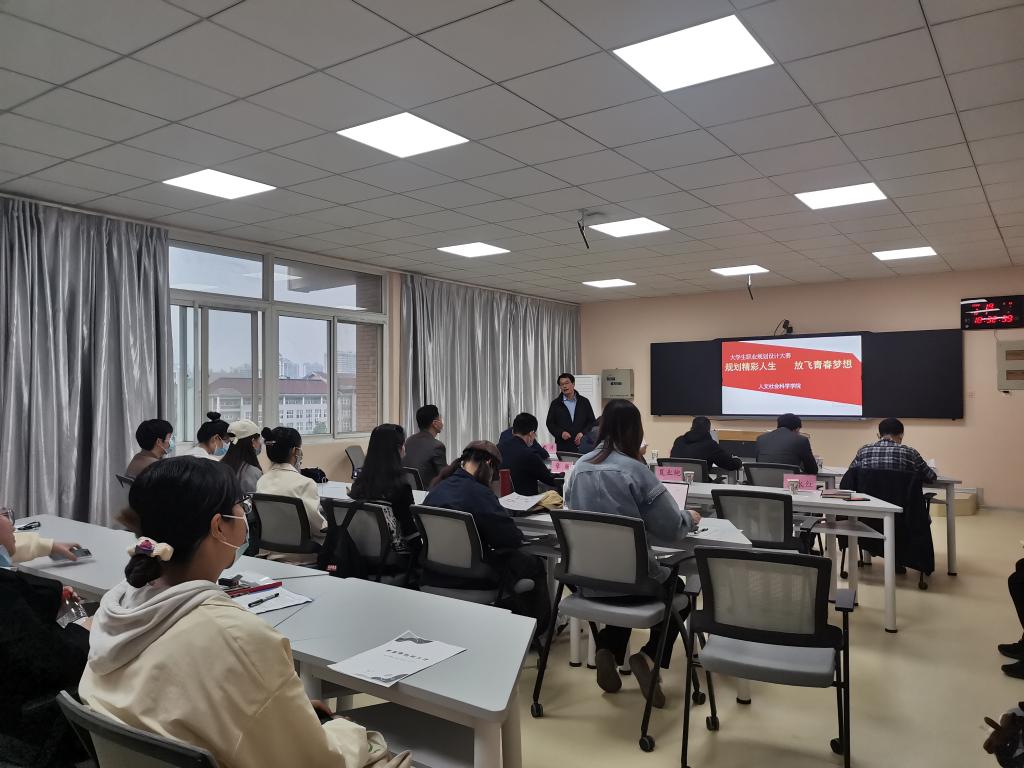 本网讯 4月19日,以“与梦想同行 创精彩人生”为主题的人文社会科学学院职业生涯规划大赛在人文楼608室举行。比赛由学院党委副书记吴永红主持。此次比赛也是校第六届大学生生涯规划活动月重要活动之一。
