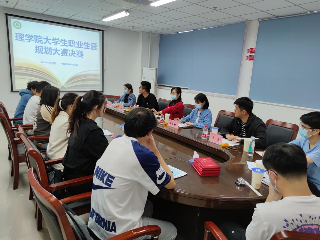 本网讯 为加强学生职业生涯规划教育,提升学生职业生涯规划意识和技能,促进学生科学规划大学阶段学习,理学院2022年大学生职业生涯规划大赛决赛于4月19日晚在理学院会议室641举行。比赛邀请了部分兄弟学院的就业联络员老师担任评委。