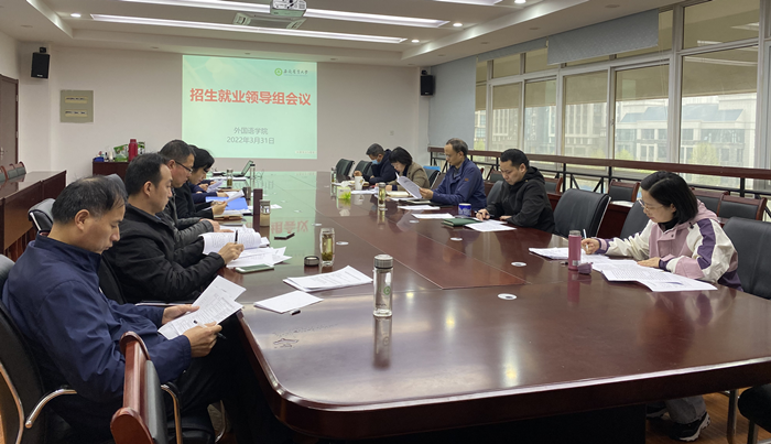 本网讯:为深入推进2022年招生就业工作,3月31日下午,外国语学院2022年招生就业领导组会议在外语楼506会议室召开,学院领导孙志农、姬惠惠、王玉明、许宗瑞以及各系部主任、毕业班辅导员等参加了会议,党委副书记姬惠惠主持会议。