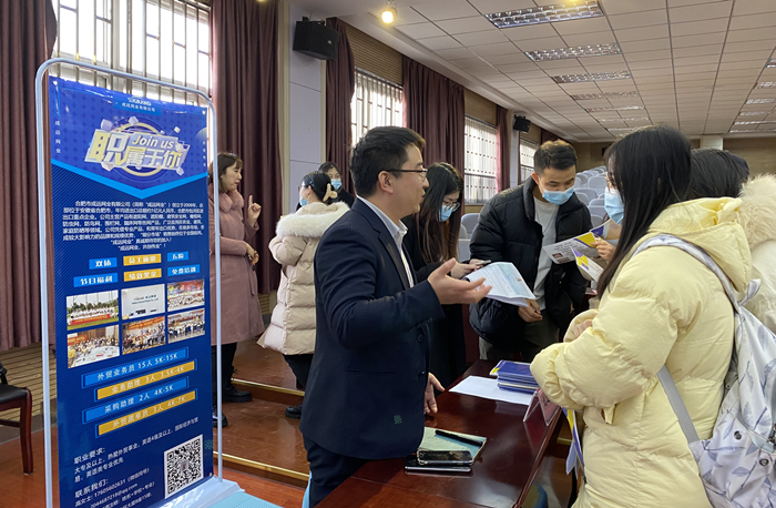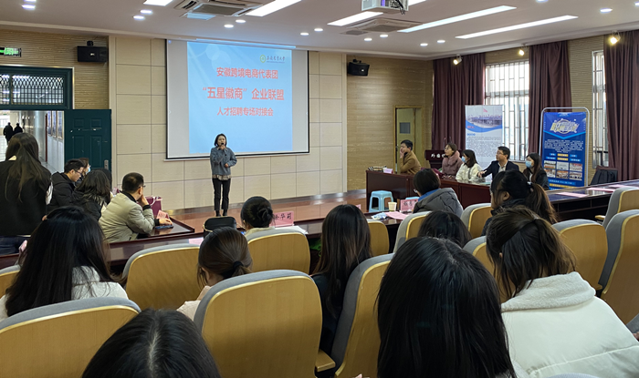 为搭建用人单位与毕业生双向平台,切实做好2022届毕业生就业工作,12月27日下午,外国语学院在外语楼502多媒体报告厅成功举办了安徽跨境电商代表团“五星徽商”企业联盟人才招聘专场对接会,对接会由学院党委副书记姬惠惠主持,毕业班班主任、100多名毕业生参加了对接会。