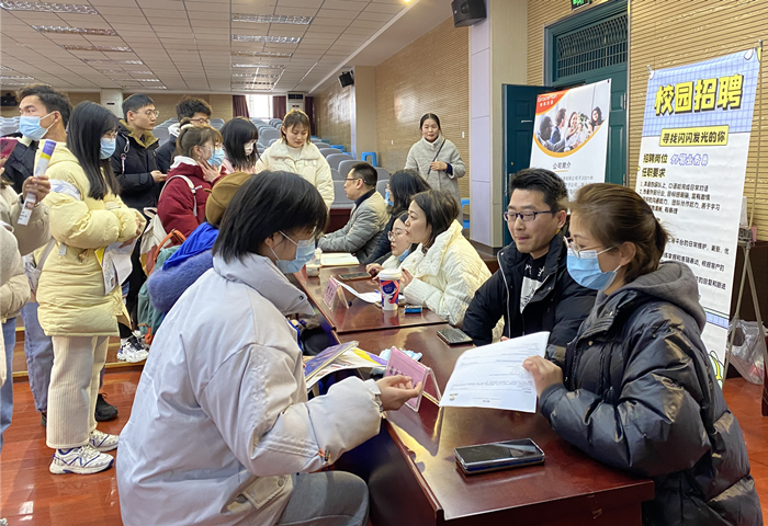 姬惠惠首先对安徽跨境电商代表团“五星徽商”企业联盟表示热烈的欢迎,并向用人单位介绍了学院2022届毕业生的主要情况,表示学院将继续努力与用人单位建立联系,拓宽就业渠道,更好服务毕业生就业。安徽艾尼尔国际贸易有限公司等6家企业依次就公司的发展历程、业务范围、企业文化、招聘岗位等开展了宣讲。宣讲结束后,参加招聘会的毕业生就岗位职责、薪资待遇、发展前景等关切的问题与用人单位进行了沟通交流,并向有意向的企业和岗位投放简历。学院将持续关注此次专场对接会后续的面试进展和签约意向动态,积极推进用人单位和毕业生进行双向互动选择。