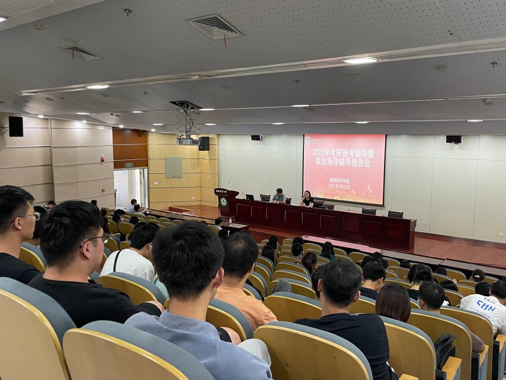 本网讯 为扎实推进党史学习教育,深入开展“我为学生办实事”实践活动,在研究生报考预报名即将开始之际,9月23日下午,植物保护学院党委组织7名党员教师,在图书馆第二报告厅举办2022年考研报考暨就业指导辅导报告会。学院副院长张华建出席会议,学院党委副书记、纪委书记、副院长汪小强主持会议。学院2022届全体本科毕业生参加会议。