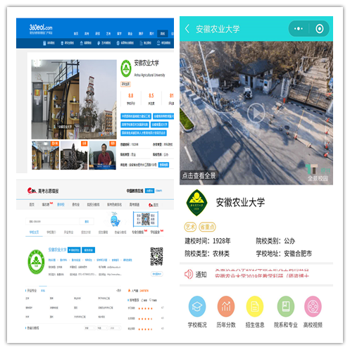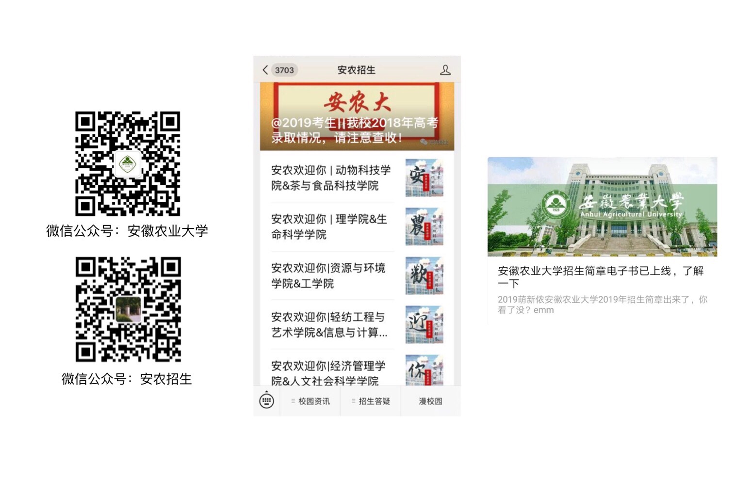 学校着力打造建设专用招生宣传阵地“安农招生” 微信公众号,原创16篇招生宣传软文,并配合安徽农业大学官方微信推送各类学校宣传文章,创新发布2019招生简章电子书,制作了掌上校园宣传平台、招生高招分答系统,同时依托360教育在线、升学在线、中安教育在线、校派APP、安徽高招咨询平台等平台载体广泛宣传,让同学们既能便捷查询到我校最新的招生简章、招生计划和往年的录取情况等信息,还能够从学院环境、优势特色、学科实力、就业前景等多方面了解学校,让志愿填报更有目标。