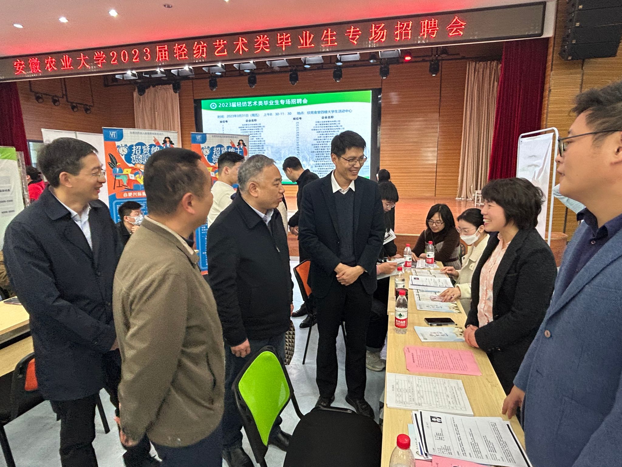 本网讯 3月31日上午,我校在欣苑四楼大学生活动中心举办2023届轻纺艺术类专场招聘会。校党委常委、纪委书记陈文兵,党委宣传部、招生就业处、轻纺工程与艺术学院有关领导到场访企拓岗,与用人单位、校友、毕业生亲切交流。