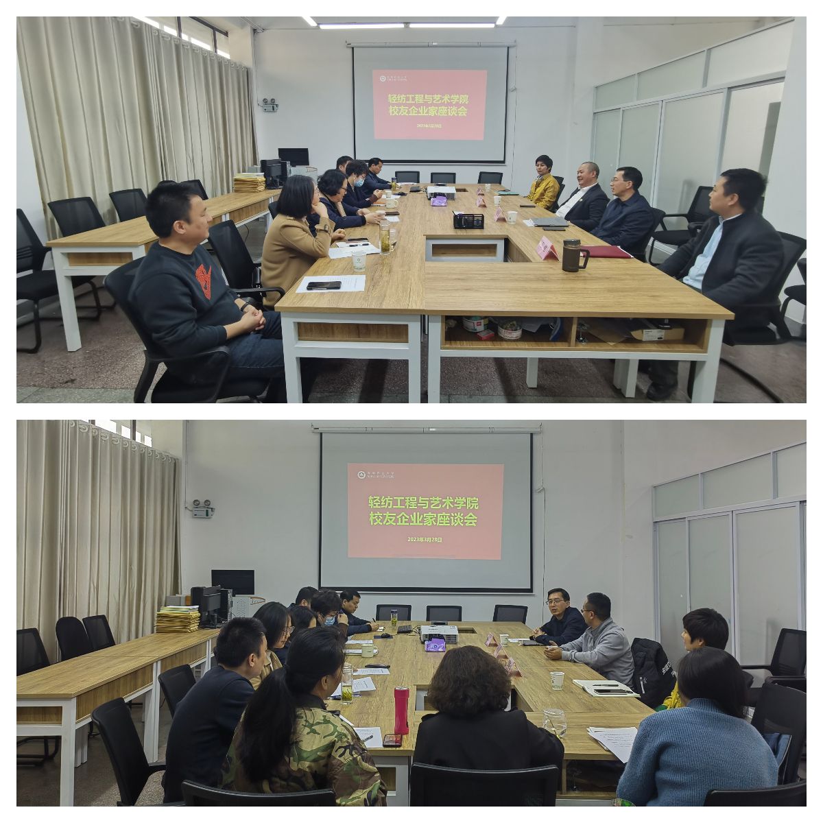 本网讯 为推动学校、学院与校友之间的融合发展,3月28日,轻纺工程与艺术学院诚挚邀请校友企业家代表安徽省亮亮纺织有限公司总经理方东、安徽艾思麦纺织科技有限公司总经理李锋返校团聚,共叙校友情,聚力促发展,开展校友返校系列活动。学院党政领导出席活动,教师代表和部分学生参加了相关活动。