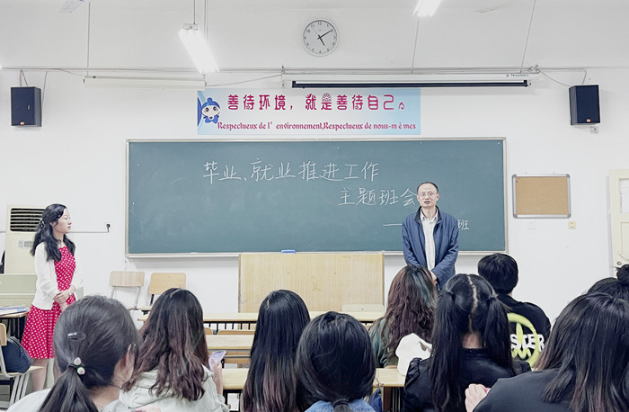 本网讯 为稳步推进2022届毕业生就业工作,5月12日下午,在学院的统一部署安排下,各毕业班在外语楼分别召开了毕业班毕业就业工作主题班会,各班级就业工作包保制负责人和毕业班在校生参加会议,会议由各班级辅导员主持。
