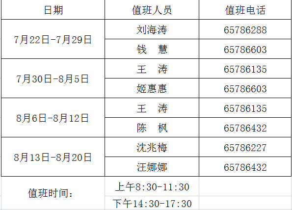 招生就业处2017年暑期值班表
