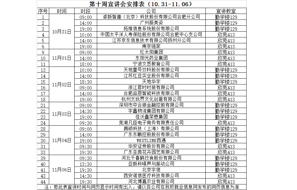 第十周宣讲会安排表(10.31-11.06)